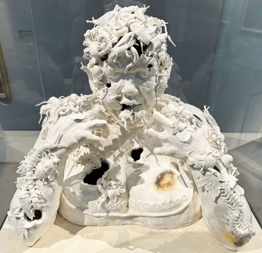 One highlight is Towards the Weird Heart of Things—a site-specific sculptural series by Lindsey Mendick. Crafted from hemp, straw, hay, sheep’s wool, and timber, the installation visualizes raw, organic responses to altered consciousness. Mendick’s tension-filled, irreverent ceramics and her framing of drug culture in ritual and bodily experience add emotional nuance to the narrative.