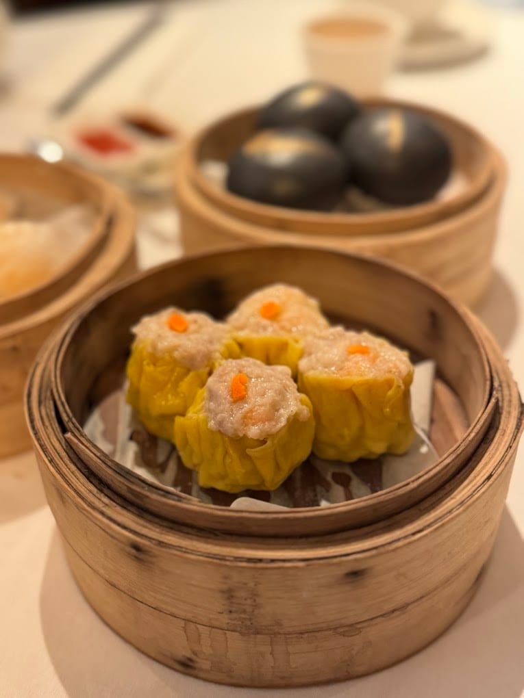Upon sitting, you're treated not to carts, but to avant-garde platings. The har gau glitters with gold leaf atop translucent shrimp, pairing purity with luxury.