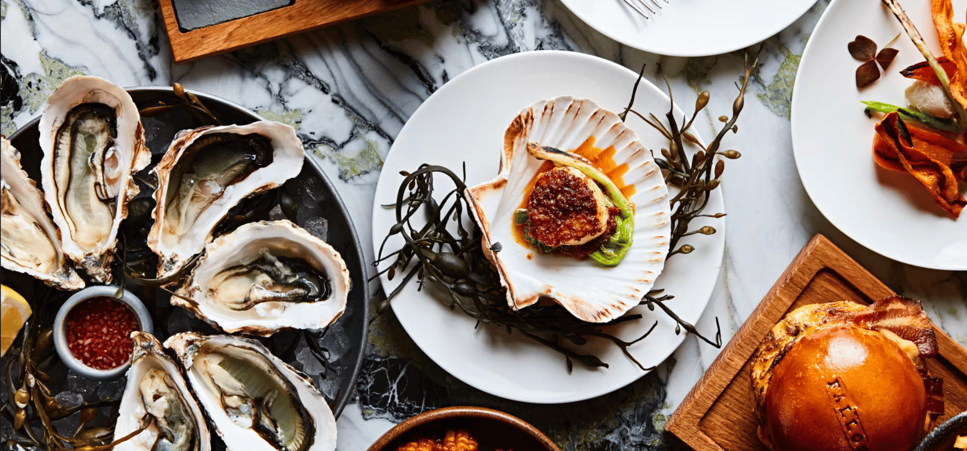 Step into Fallow in St James’s Market and the contrast is immediate. The room hums with energy: neon signage, a central open kitchen crackling with flame, and an upbeat soundtrack replace Story’s quiet reverence.