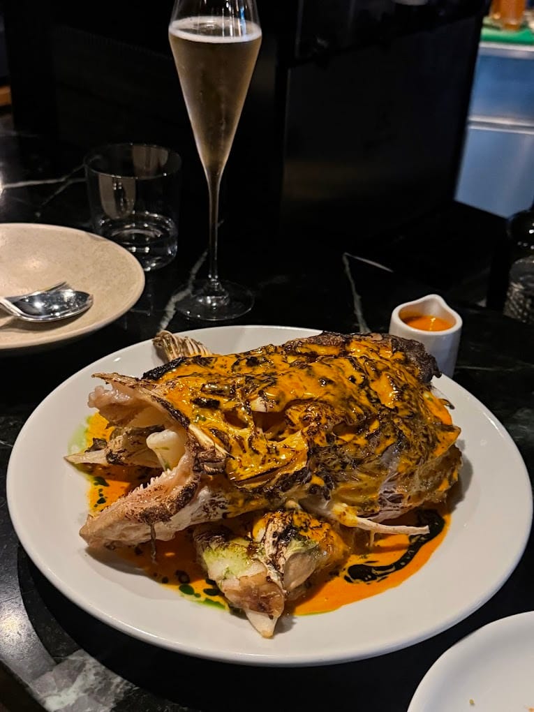 Signature dishes headline every sustainability conversation. The “Corn Ribs” = grilled corn quarters dusted with salt and lime, are a hallmark of the restaurant, playful yet precise. Their “Dairy Cow Burger,” made from retired dairy cows often dismissed by the industry, has become a modern London icon: juicy, funkier than Wagyu, served with melted cheese and cleverly balanced pickles. Even the Cod’s head - charred, lacquered in sweet and spicy sauce - embodies their message that flavour and ethics coexist. Cooked so prefectly, it leaves you licking the plate clean. Many dishes cost £10–£25, keeping it accessible despite its Mayfair postcode.
