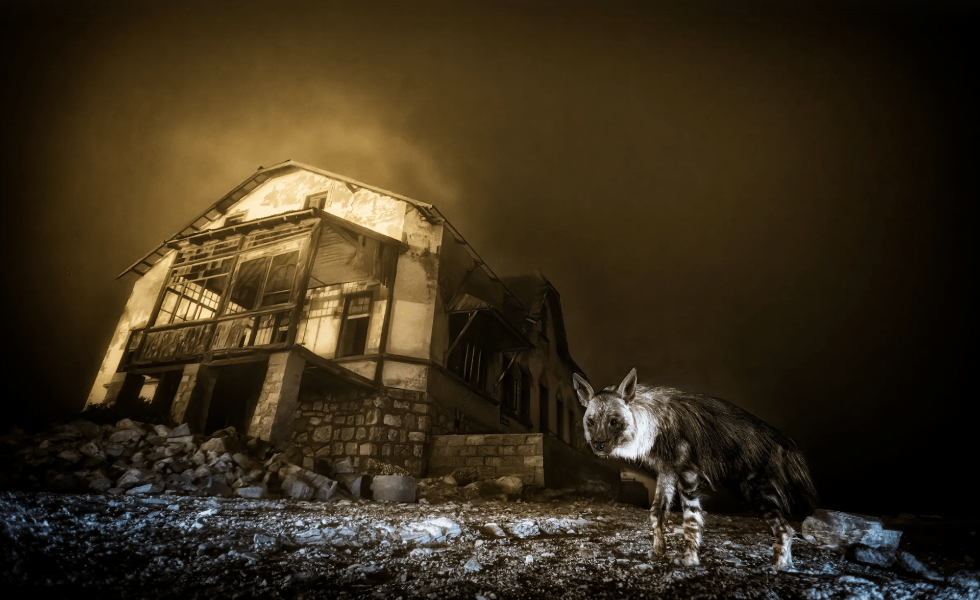 Beyond its technical mastery, “Ghost Town Visitor” holds emotional resonance. There is loneliness in it, but also resilience. The hyena is not defeated by its surroundings; it redefines them through movement. The composition draws our eyes along its path as if inviting us to follow wherever it leads. In that invitation lies the photograph’s power. It does not accuse it observes, persuading us to reflect on the inheritance we are leaving behind in forgotten corners of the planet.