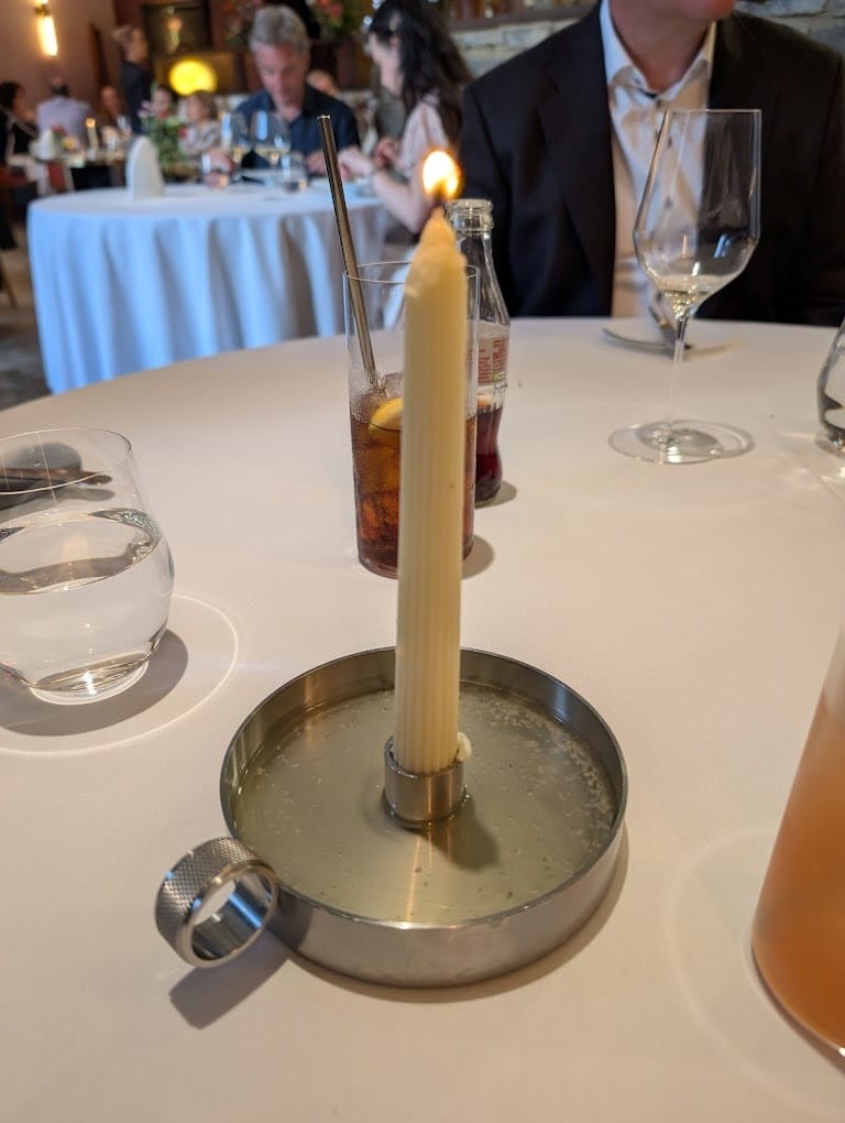 The tasting menu, typically around £225 for 10 courses, unfolds like a memoir of Sellers’ memories and philosophies. The opening “Beef and Dripping Candle”, one of London’s most photographed dishes, sets the tone. A candle formed from rendered beef fat slowly melts into a pool, ready to be dipped with fresh bread; nostalgia for Sunday pub gravy dressed in haute couture.