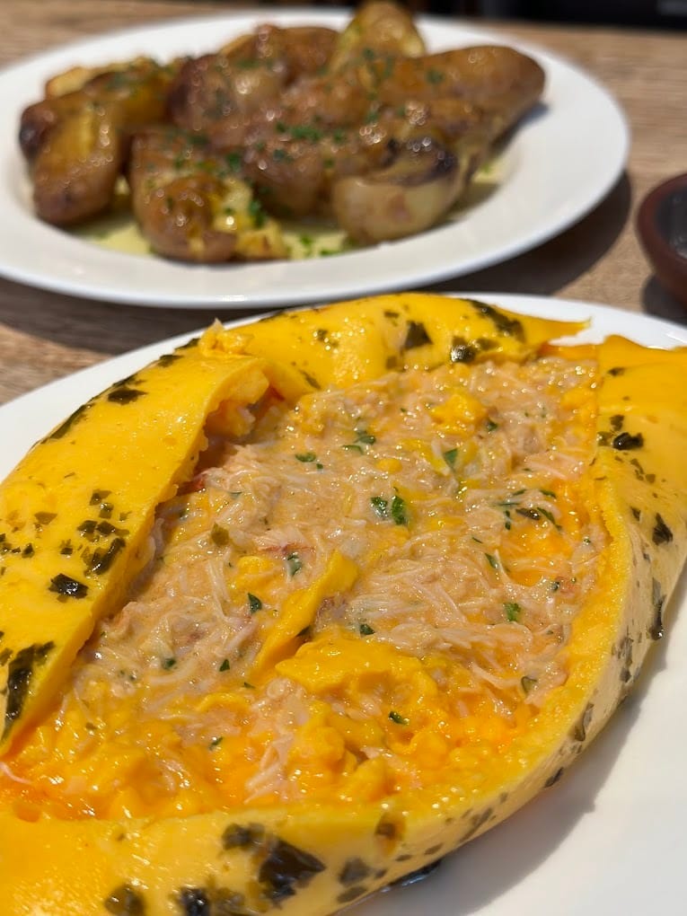 The menu reads like a riddle of land and sea in thick Welsh handwriting: spider crab omelette, wood-grilled bread with anchovy, whole pink bream presented head-on, grilled lamb chops glistening with smoke oil. Every plate feels like an event. That spider crab dish is the unofficial signature. The meat is pulled, sweet and saline, and folded into a warm, soft egg custard cooked in its shell. It’s served with a spoon and reverence. Cutting into it is like cracking the code of Parry’s ethos: seafood treated with the care usually reserved for caviar, but served with rustic immediacy.